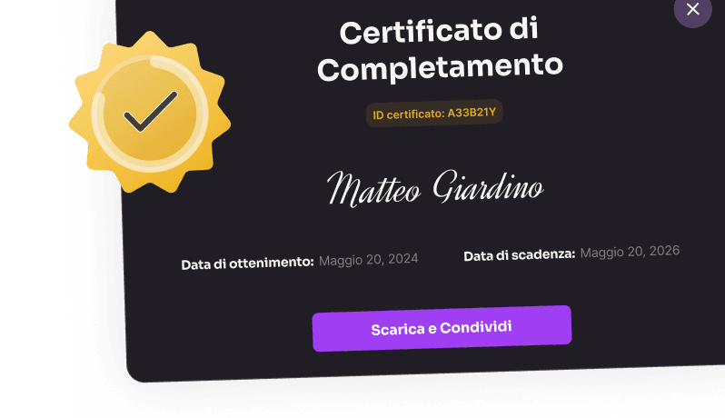 Ottieni un certificato condivisibile al completamento dei corsi per dimostrare le tue competenze.