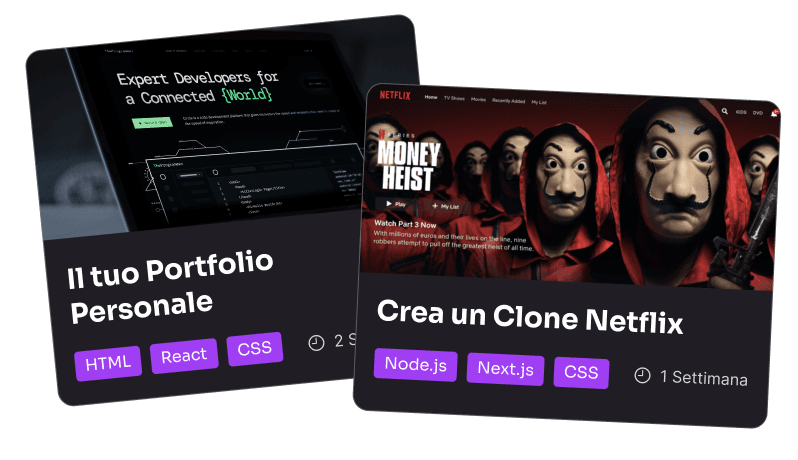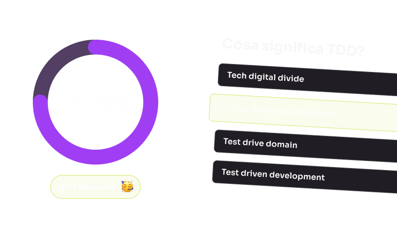 Impara a programmare con lezioni pratiche e interattive. Esercizi, sfide e progetti stimolanti rendono l'apprendimento unico, un'esperienza che non troverai in corsi, bootcamp o tutorial.